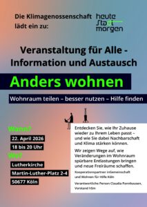 Einladung zu Information und Austausch zum Thema „Anders wohnen“ am 22. April 2026 in der Lutherkirche, Köln Südstadt